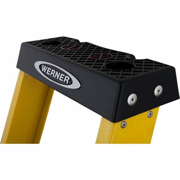 The 717 Series Platform Fiberglass Stepladder has a Multi-functional Holster Top to keep tools organized and safe on the ladder. With non-conductive stiles, this ladder is ideal for working around electricity. Features include a large platform to a provide secure and comfortable work area, slip-resistant steps for comfortable standing and EDGE bracing to help prevent rail damage. This ladder works indoors and outdoors. Suitable for professional use.
