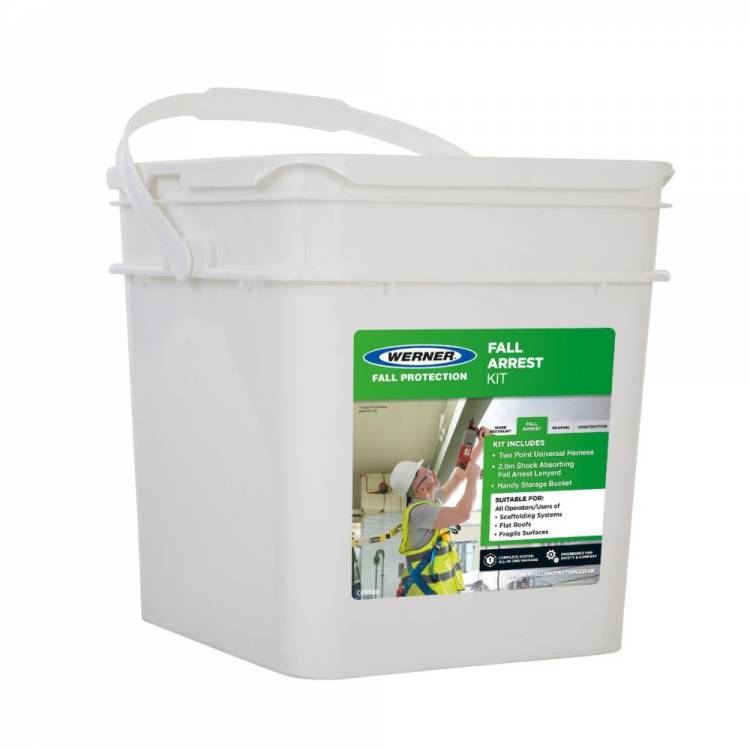 The Werner 79202 Fall Arrest Kit comes complete with a two point harness and 2m shock absorbing fall arrest lanyard. With multi-adjustment webbing straps for maximum comfort featuring rescue front and rear anchor attachment points, this fall arrest kit ensures maximum protection in the event of a fall. Supplied in a waterproof bucket.