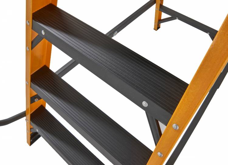 The 30090618 6 tread Megastep is constructed using durable, non conductive, fibreglass rails that are highly resistant to weathering. This ladder includes twin handrails for safety when climbing the ladder and a safety chain to enable 360° protection when working on the platform. A platform height of 1.27m enables a safe working height of 3.02m* so this ladder is ideal for any job around the worksite. Conforms to the new EN131 standard. Suitable for Professional Use.